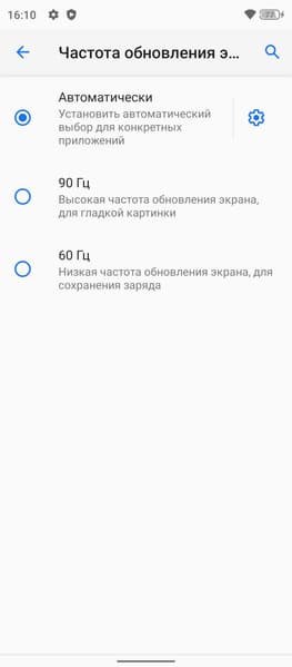 В настройках экрана можно включить режим с повышенной до 90 Гц частотой обновления, что приводит как минимум к увеличению плавности прокрутки списков в меню.