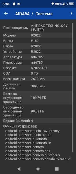 - Оперативная память 8 ГБ (LPDDR4X), внутренняя память 128 ГБ (UFS 2.1)