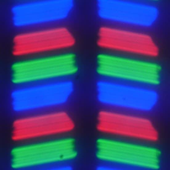 В данном смартфоне используется матрица типа IPS. Микрофотографии демонстрируют типичную для IPS структуру субпикселей: