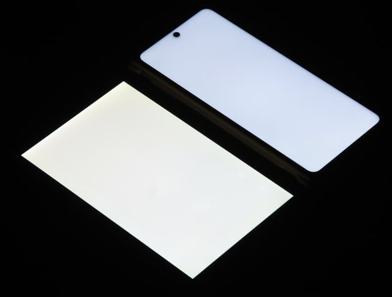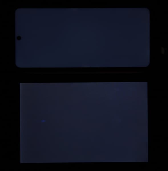 При перпендикулярном взгляде равномерность черного поля средняя (для наглядности яркость подсветки на смартфоне установлена на максимум):