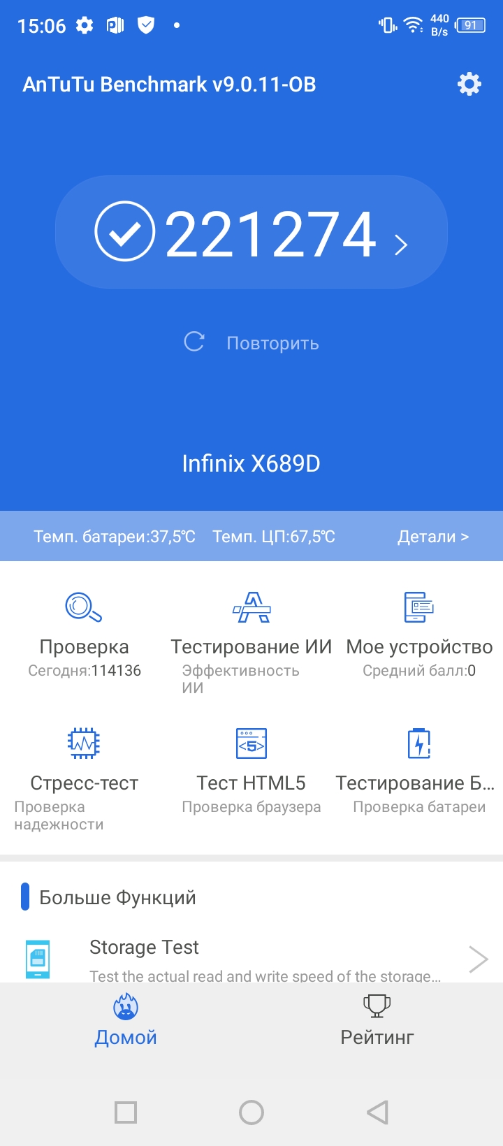 | AnTuTu (v9.x) (больше — лучше) | 221274 | 283847 | 271388 | 219907 | 300841 |