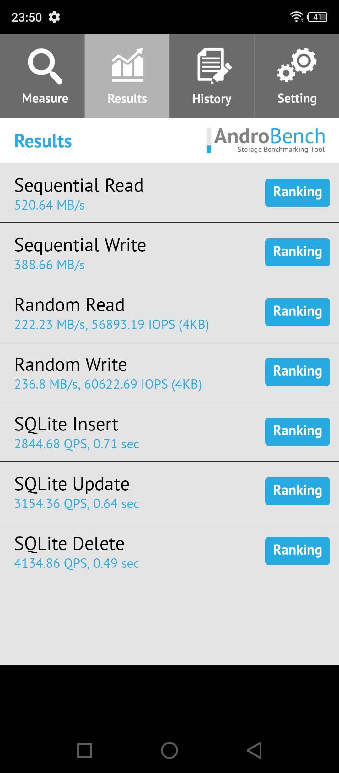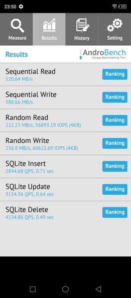 Результаты теста AndroBench на скорость работы с памятью: