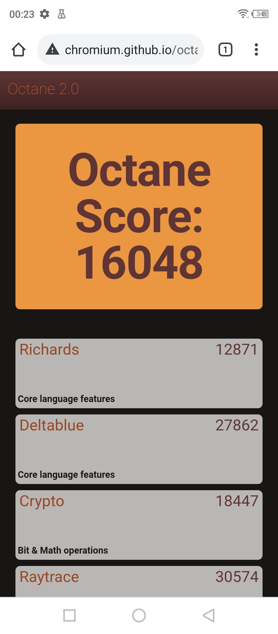 | Google Octane 2 (больше — лучше) | 16048 | 17377 | 14852 | 9011 | 13169 |