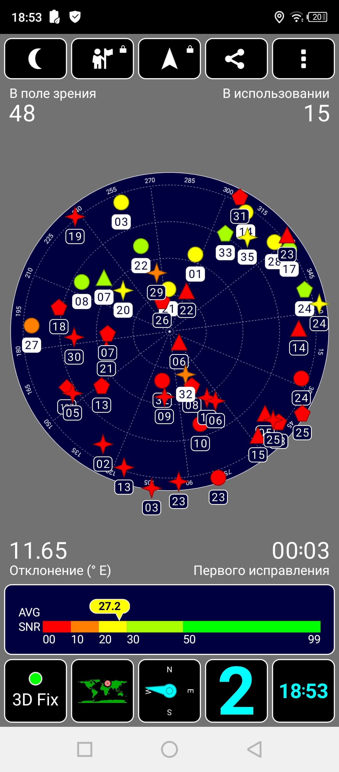 Навигационный модуль работает с GPS (с A-GPS), а также с Глонасс, BeiDou и Galileo. Первые спутники даже при холодном старте обнаруживаются быстро, точность позиционирования не вызывает претензий.