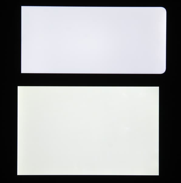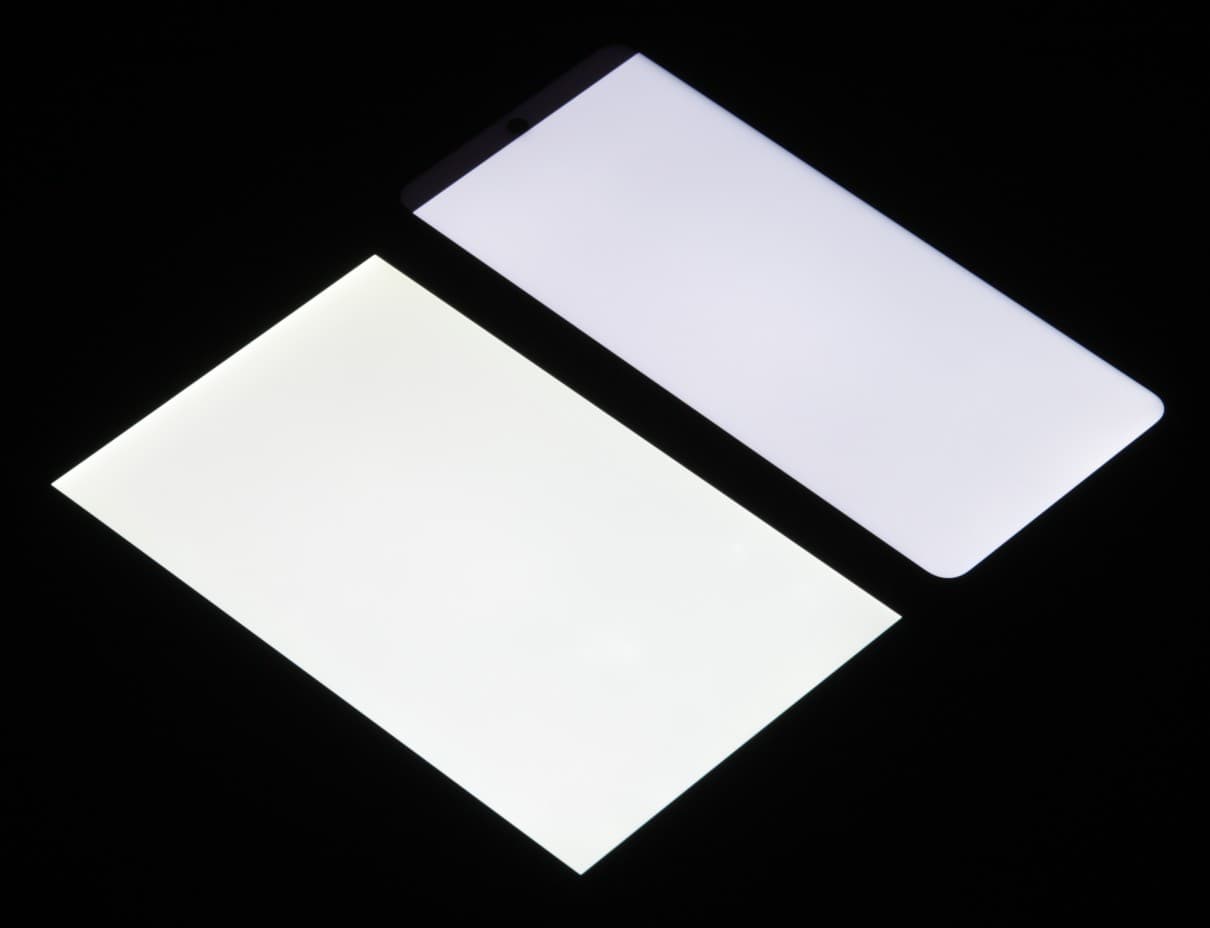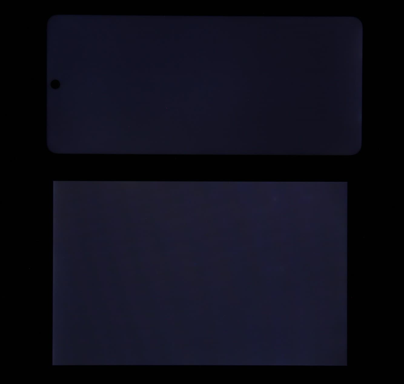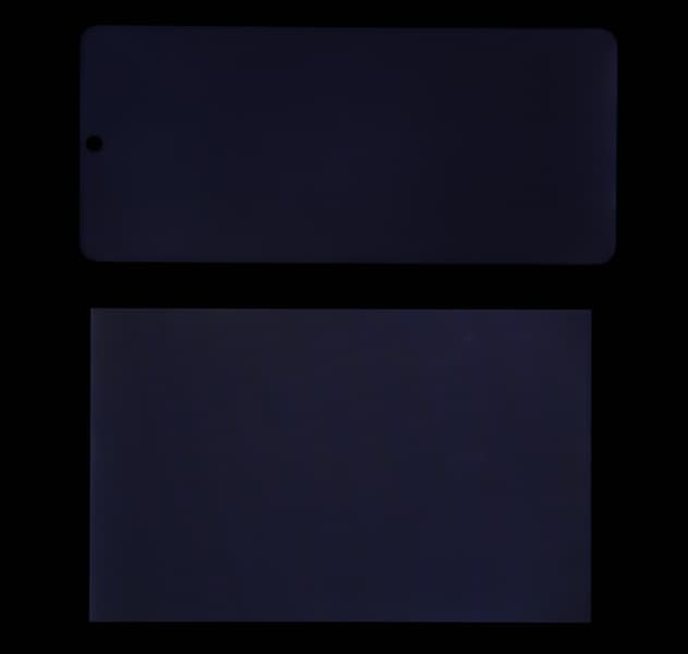 При перпендикулярном взгляде равномерность черного поля хорошая (для наглядности яркость подсветки на смартфоне установлена на максимум):