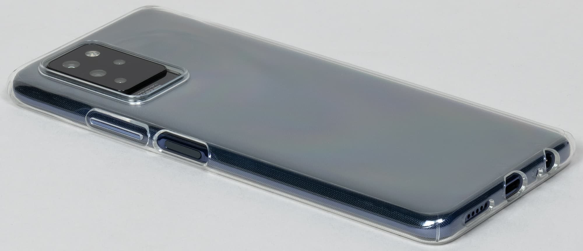 Гибкий и прозрачный комплектный чехол позволяет более надежно удерживать скользкое устройство в руках и при этом не скрывает его внешней привлекательности. Но, понятно, с ним смартфон становится еще больше и толще.