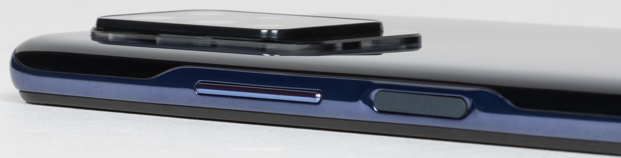 Сканер отпечатков пальцев — традиционный емкостный, размещен сбоку, вмонтирован прямо в плоскую площадку кнопки питания и блокировки. Работает он быстро и безошибочно. Кнопки удобно расположены на одной боковой грани — правда, качелька регулировки громкости имеет слишком короткий ход и настолько мало выпирает, что ее трудно нащупать вслепую.