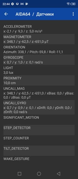 - Датчики приближения и освещения, магнитного поля, акселерометр, гироскоп
