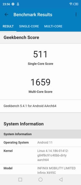 Объем оперативной памяти LPDDR4X составляет 6 или 8 ГБ, объем хранилища UFS 2.1 — 128 или 256 ГБ (по крайней мере, так было заявлено представителями Infinix, но к моменту публикации обзора с TMall можно было заказать модели с объемом памяти 6/64 ГБ и 8/128 ГБ). Можно устанавливать в смартфон карту памяти, поддерживается и подключение внешних устройств к порту USB Type-C в режиме USB OTG.