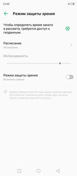 Также присутствует настройка, позволяющая снизить интенсивность синей компоненты.