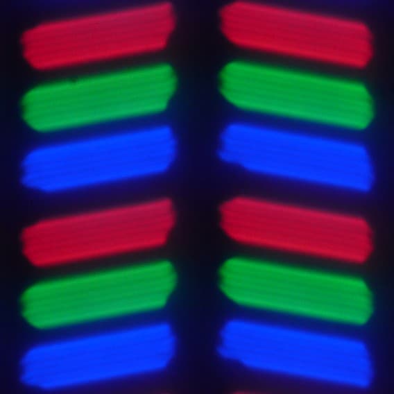 В данном смартфоне используется матрица типа IPS. Микрофотографии демонстрируют типичную для IPS структуру субпикселей: