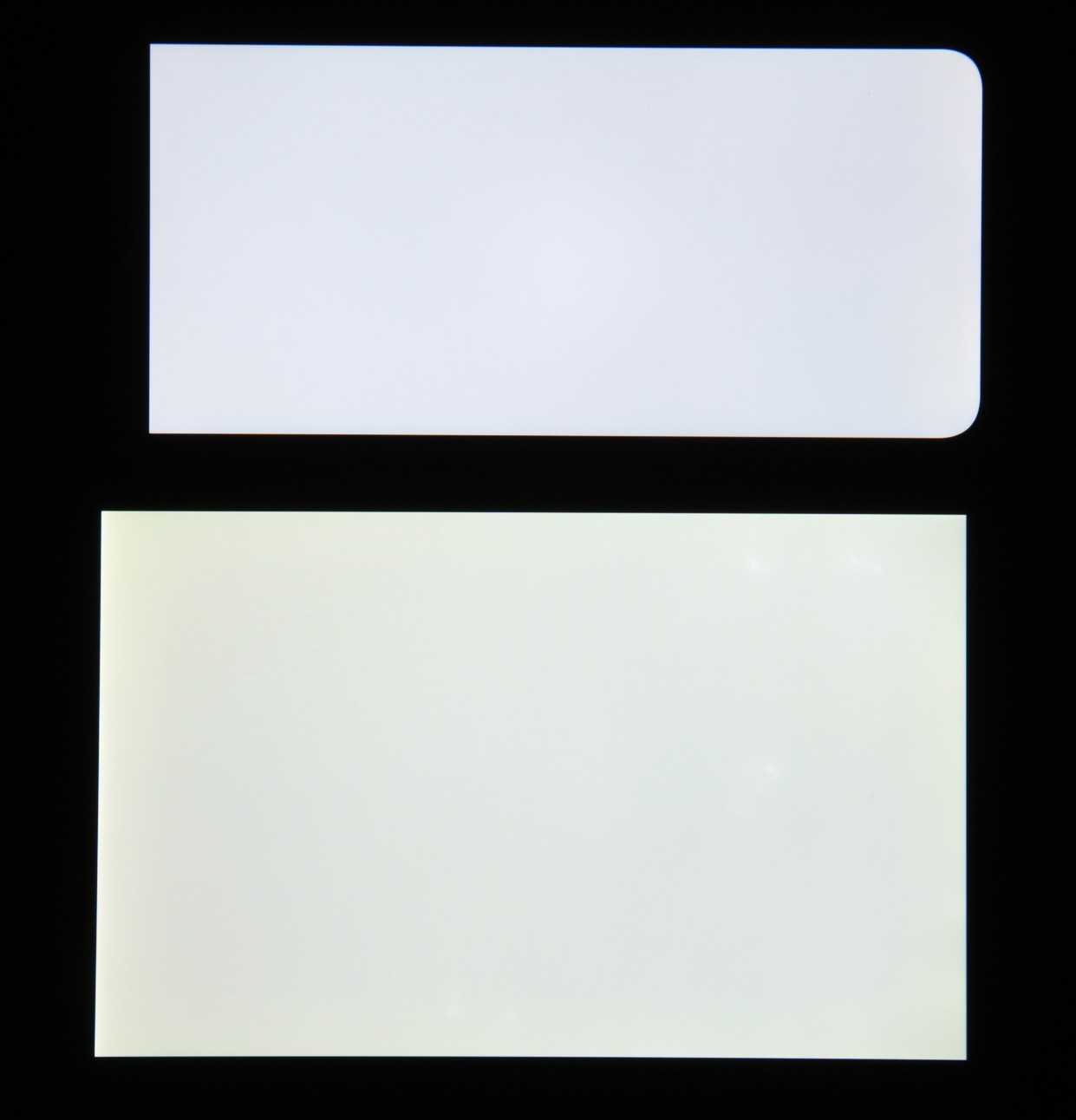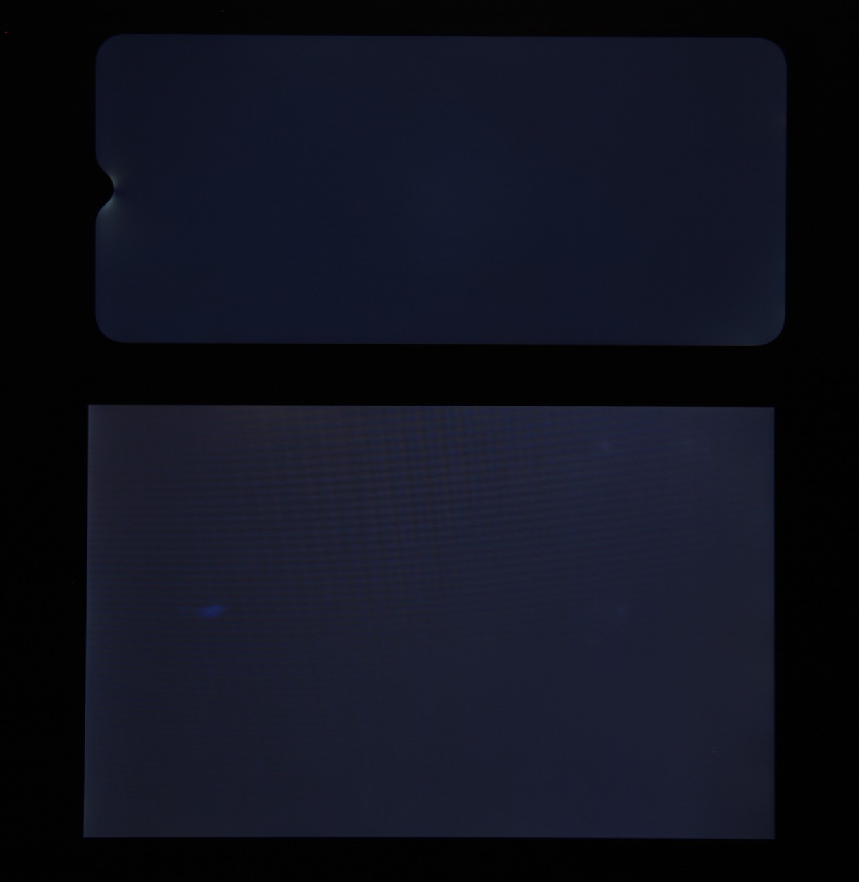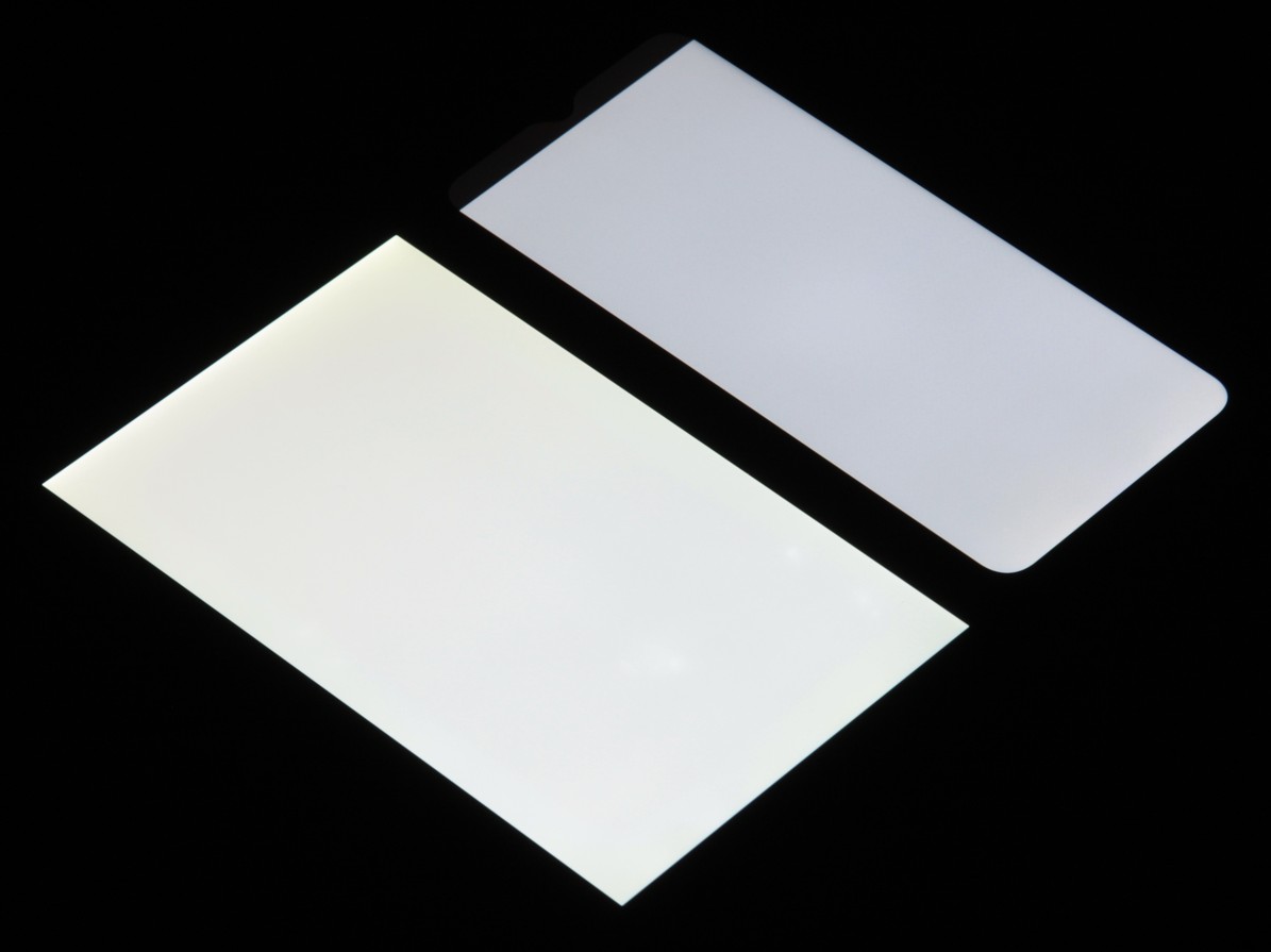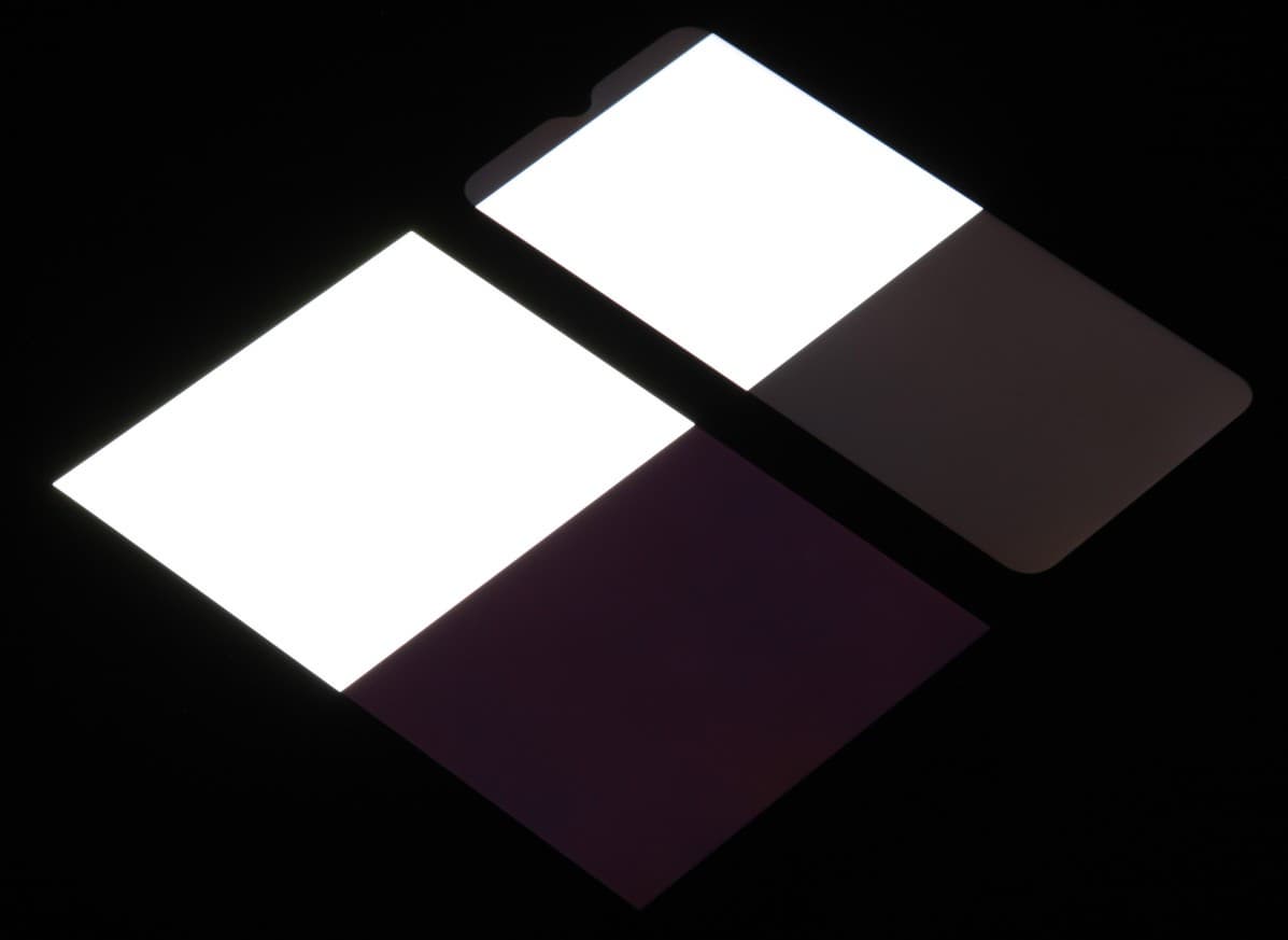 При перпендикулярном взгляде равномерность черного поля средняя (для наглядности яркость подсветки на смартфоне установлена на максимум):