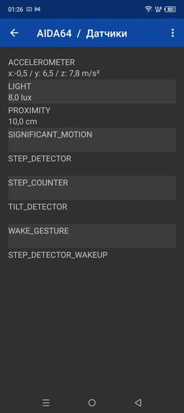 - Датчики приближения и освещения, акселерометр