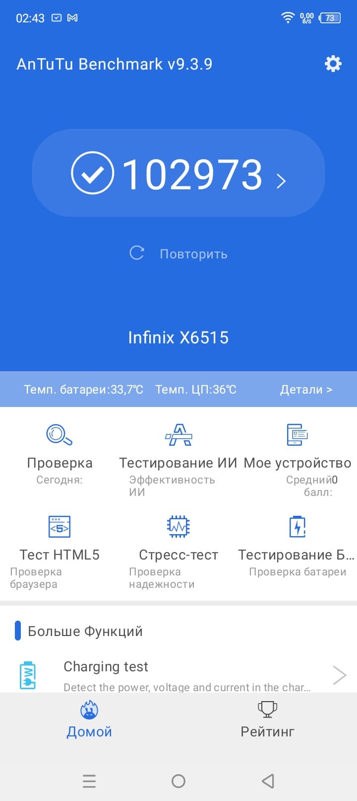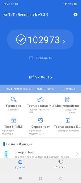 Тестирование в комплексных тестах AnTuTu и GeekBench: