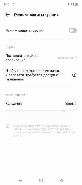 Присутствует настройка, позволяющая снизить интенсивность синей компоненты.