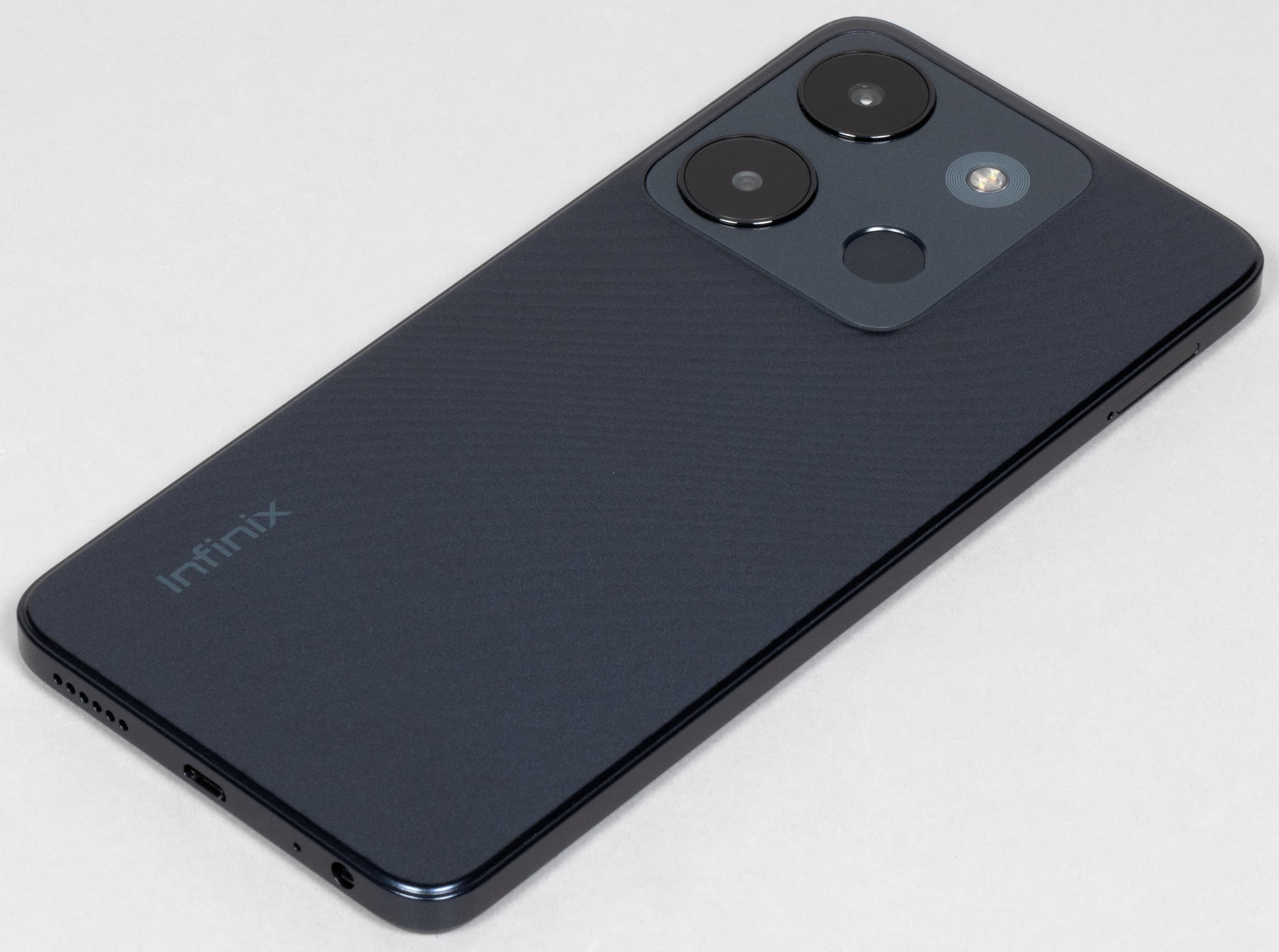 Infinix Smart 7 выпускается в черном, белом, зеленом и синем вариантах оформления корпуса. Корпус не получил полноценной защиты от воды и пыли.