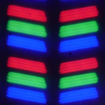 В данном смартфоне используется матрица типа IPS. Микрофотографии демонстрируют типичную для IPS структуру субпикселей: