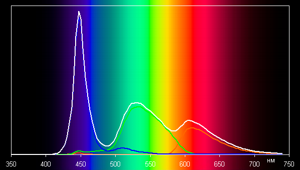 Спектры показывают, что светофильтры матрицы в умеренной степени подмешивают компоненты друг к другу: