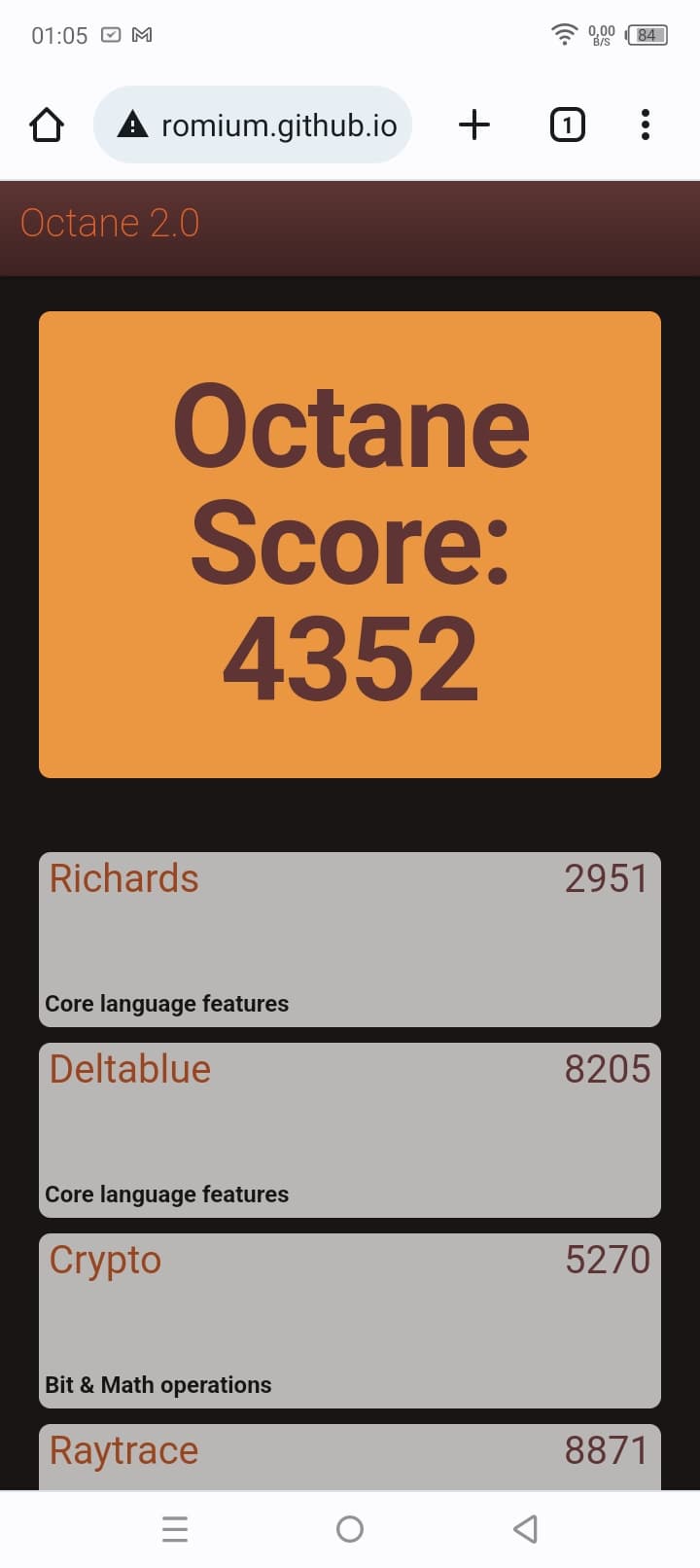 | Google Octane 2 (больше — лучше) | 4352 | 5095 | 14263 | 12457 | 19887 |