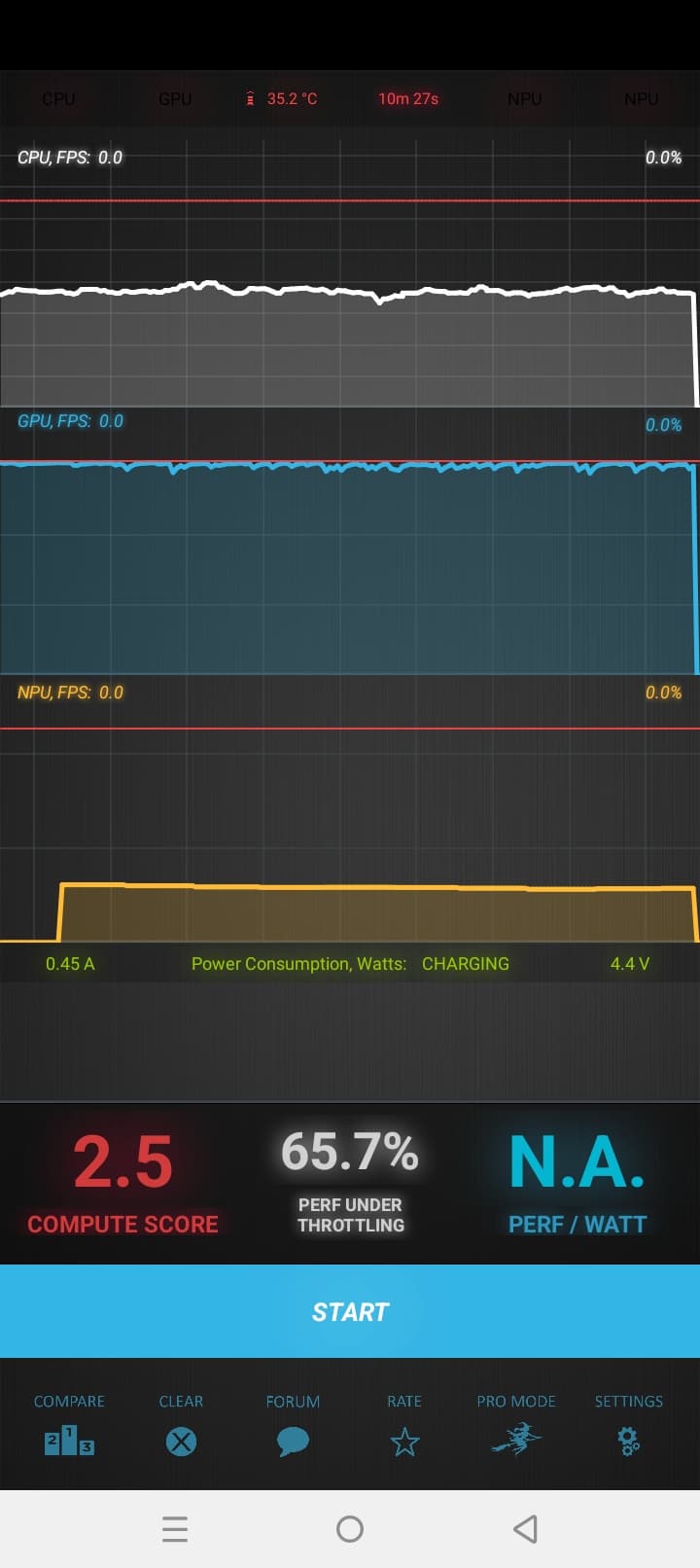 Тест на снижение производительности при нагреве мы проводим с помощью программы Burnout Benchmark, которая позволяет нагружать CPU, GPU и NPU: