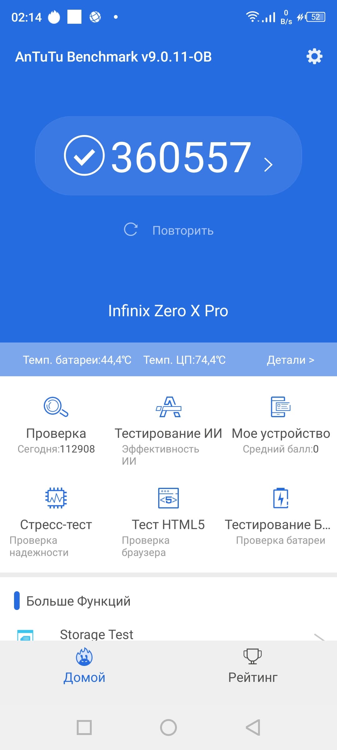 | AnTuTu (v9.x) (больше — лучше) | 360557 | 535936 | 353105 | 344282 | 298863 |