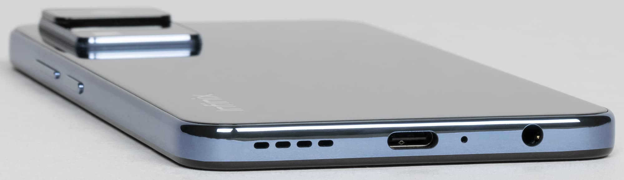 По дизайну Infinix Zero X Pro отличается от большинства китайских сородичей, которые продолжают клонировать смартфоны с сильно зализанными обтекаемыми формами, закругленными углами и зауженными гранями. Здесь же производитель быстро переориентировался: Apple со своими новыми iPhone возвращает в моду широкие плоские боковины, и Infinix Zero X Pro копирует именно такую форму.