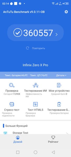 Infinix Zero X Pro работает на SoC Mediatek Helio G95 с восемью процессорными ядрами: 2×Cortex-A76 @2,05 ГГц + 6×Cortex-A55 @2,0 ГГц. Роль графического процессора выполняет GPU Mali-G76 MC4.
