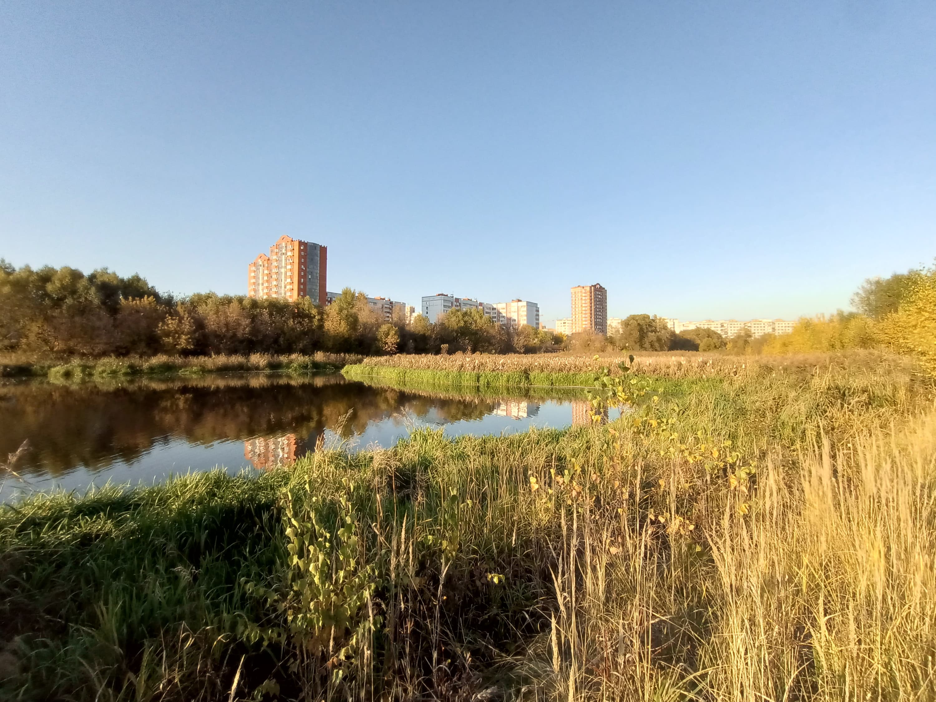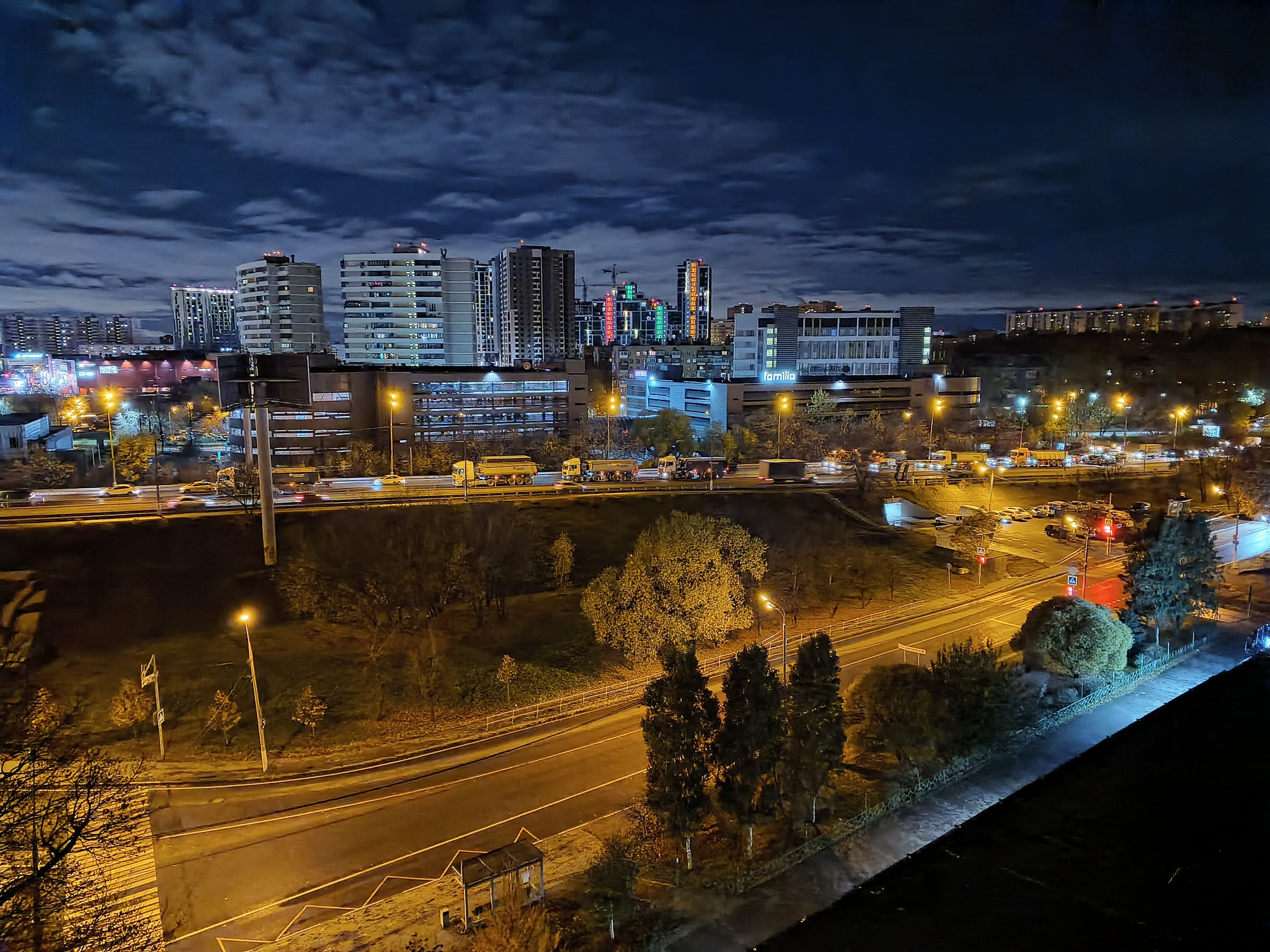 Основной 108-мегапиксельный модуль имеет фазовый PDAF-автофокус и оптический стабилизатор. Он умеет снимать в полном разрешении и с функцией объединения каждых 9 пикселей в 1 (12 Мп). Переключение между режимами удобно осуществляется в одно касание. Необходимо отметить, что сенсор у основной камеры совсем небольшой, и от нее трудно ожидать чистой картинки даже при съемке в 12 Мп, куда уж там говорить про 108 Мп. И действительно, даже дневные 108-мегапиксельные фотографии просто залиты шумом. Хорошая постобработка «в умелых руках» может добавить картинке зрелищности, контрастности и объема, грамотно использовать огромный запас по разрешению, чтобы получить как минимум приемлемую детализацию в меньшем разрешении. Однако здесь программа работает топорно, грубо, слишком увлекается вычищением щумов, убивая мелкие детали, и перешарпливает картинку в надежде подчеркнуть оставшиеся. В итоге мелкие детали, такие как листва и трава на средних и дальних планах, просто режут глаз, от массива подчеркнутых обводов каждого листочка (как его себе представляет программа) буквально рябят в глазах, а на однородных поверхностях наблюдается либо каша из остатков деталей и шумов, либо «пластилиновые» выглаженные прямоугольники (или другие геометрические примитивы). Вроде бы можно посоветовать снимать в 108 Мп, но в полном размере такие снимки смотрятся плохо, их надо обязательно обрабатывать в фоторедакторе с уменьшением разрешения, а это время, которое, как и желание, есть далеко не у всех. Без уменьшения же эти фотографии занимают по 50-60 МБ (снимки 12 Мп — 4-5 МБ), медленно открываются и листаются.