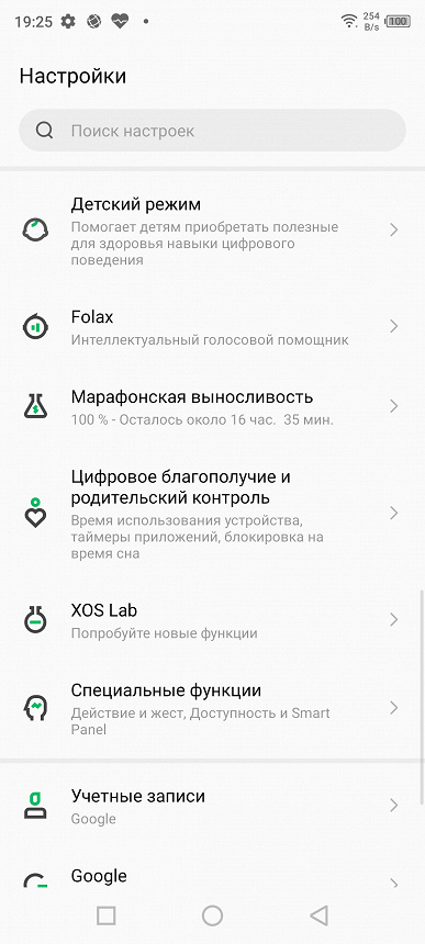 В качестве программной платформы используется ОС Android 11 с собственной оболочкой XOS 7.6. Интерфейс вполне типичный для китайского смартфона, с многочисленными настройками, дополнительными функциями и специальными режимами. Есть знакомый уже фирменный режим приватности, имеется защищенный детский режим, а также игровой режим с массой дополнительных функций для игр. Официальный магазин приложений Google Play и сервисы Google на месте.