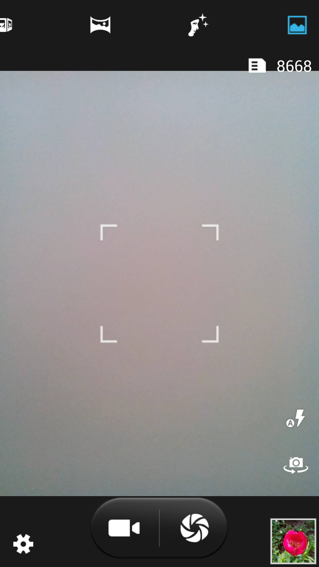 Программа для работы с камерами в устройстве очень похожа на рассмотренную недавно версию в другом аппарате на этой платформе. На основном окне есть отдельные кнопки для съемки фото и видео, пиктограммы переключения режима вспышки и выбора камеры, значки для переключения в специальные режимы — панорама, съемка объекта с разных сторон, сцена, «улыбка» и другие (странно, что HDR в списке отсутствует).
