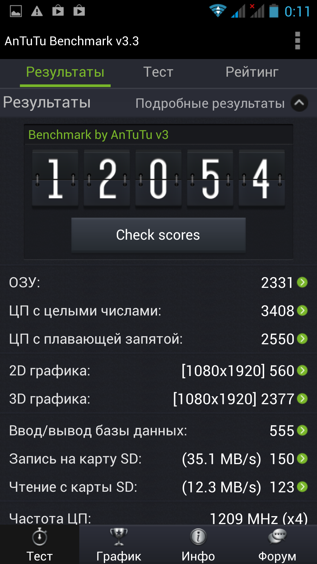 * Результаты для Fly IQ451 взяты из он-лайн баз соответствующих тестовых пакетов