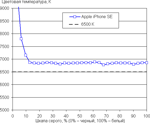 | Функция True Tone выключена | 6850 | 5,6 |