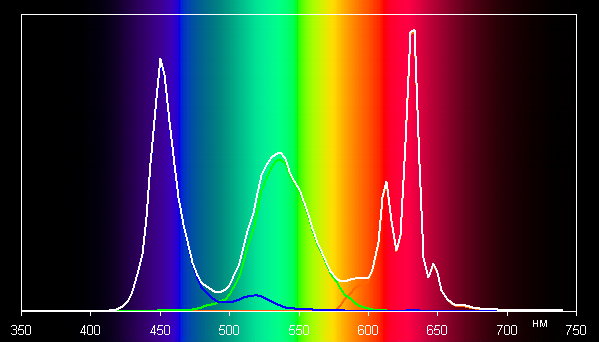 Отметим, что координаты первичных цветов практически в точности совпали с теми, что прописаны для стандарта DCI-P3. Смотрим на спектры в случае тестовых изображений с профилем Display P3: