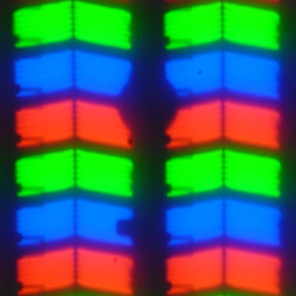 В данном смартфоне используется матрица типа IPS. Микрофотографии демонстрируют типичную для IPS структуру субпикселей: