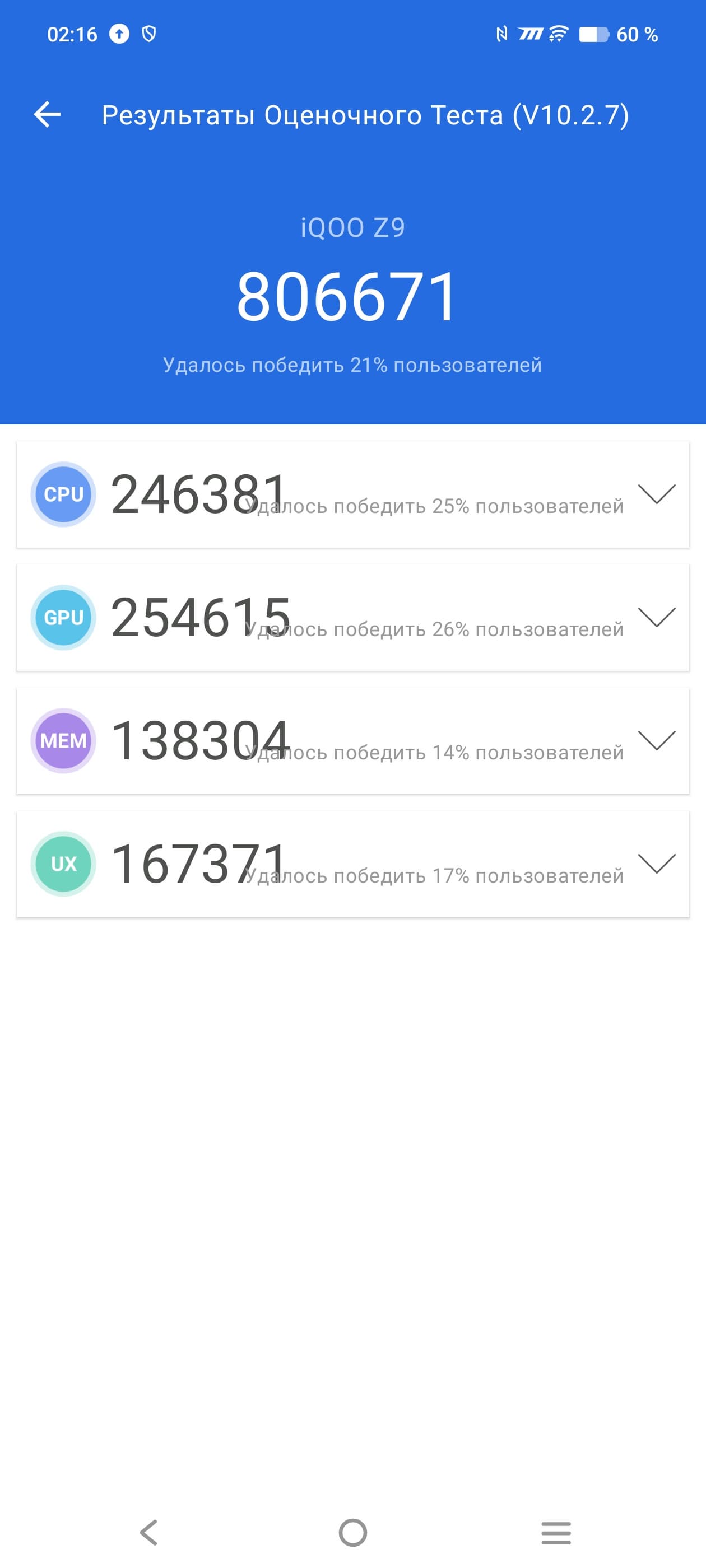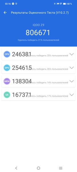 | AnTuTu (v10.x) (больше — лучше) | 806671 | 588204 | 730514 | 620852 | 792657 |