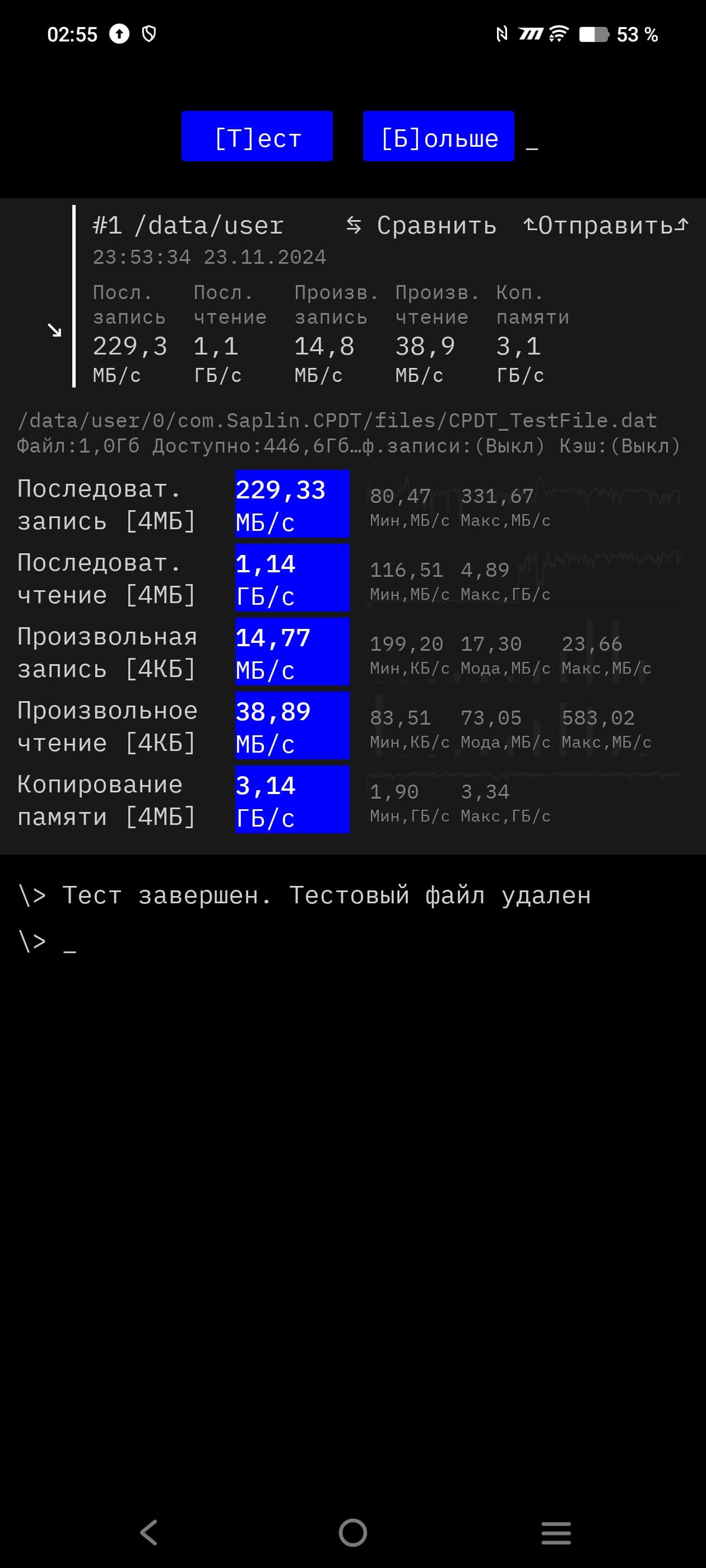 Результаты тестирования скорости памяти: