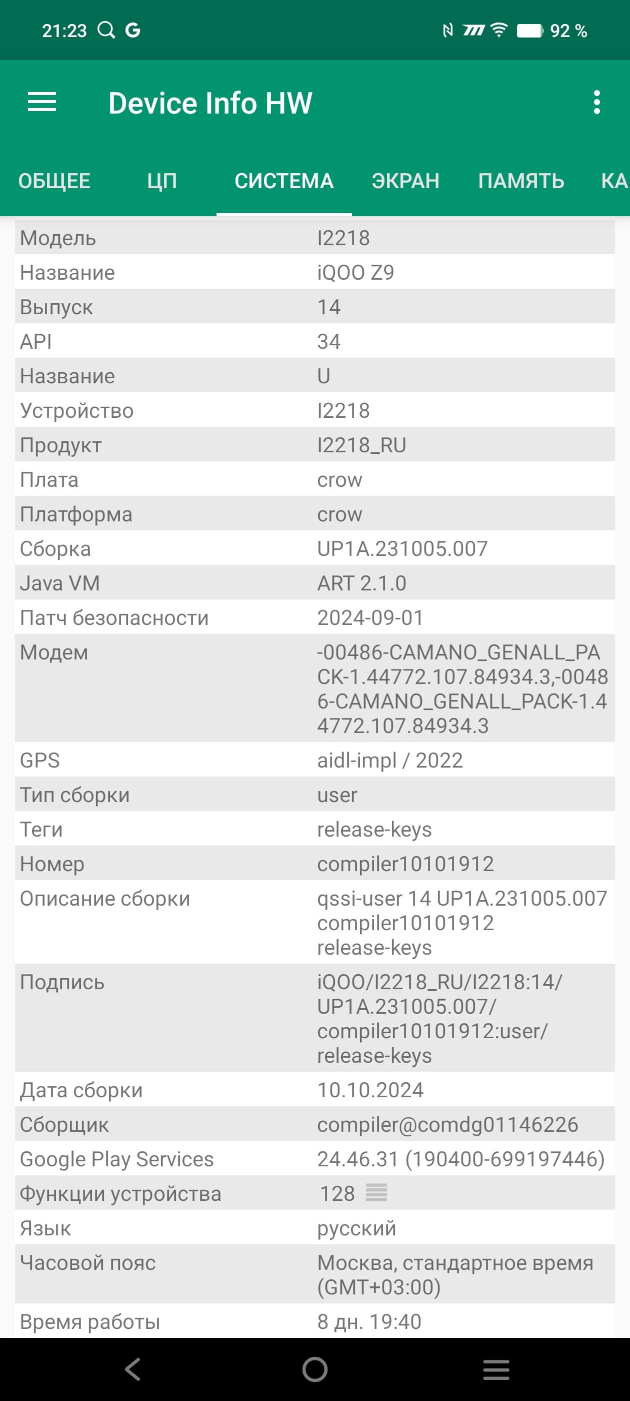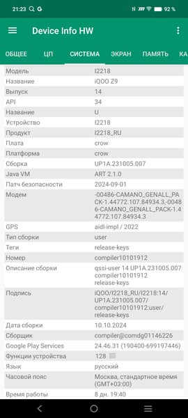 У смартфона iQoo Z9 достойные сетевые возможности: поддерживаются сети вплоть до 5G, два диапазона Wi-Fi 6 и Bluetooth 5.4, есть поддержка NFC. На практике в пределах городской черты московского региона аппарат демонстрирует уверенную работу в беспроводных сетях, не теряет связь, быстро восстанавливает связь после вынужденного обрыва. Все необходимые встроенные датчики, вплоть до гироскопа, на месте.