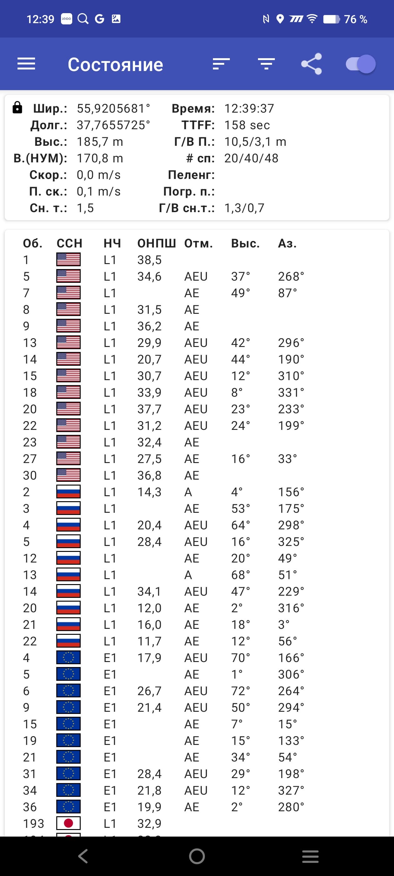 - GPS, Глонасс, BDS, Galileo