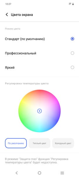 Дополнительно в этом устройстве есть возможность скорректировать цветовой баланс с помощью выбора профиля цветовой температуры или регулировки оттенка на цветовом круге.