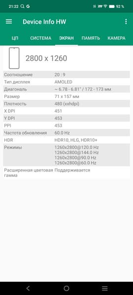 - Сенсорный дисплей AMOLED, 6,78″, 1260×2800, 453 ppi, 144 Гц
