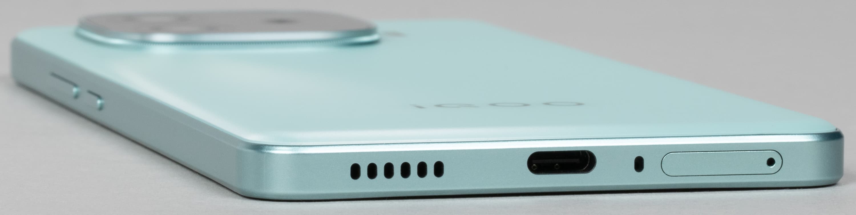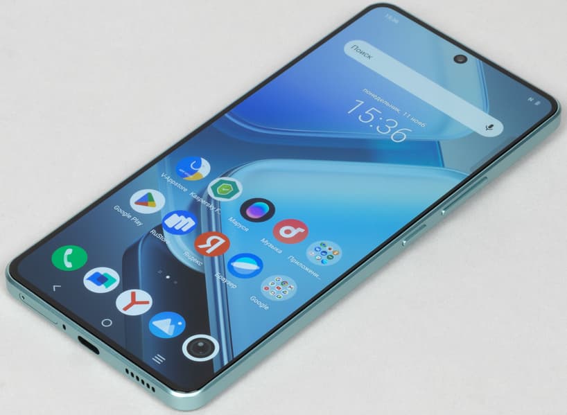 У iQoo Z9 простой и современный дизайн с актуальными формами. Просто, лаконично и практично. Боковины абсолютно плоские и не зауженные, за широкие бока смартфон надежно удерживается в руке. Спинка также в целом плоская, но к бокам она образует небольшие скосы, так что грани не врезаются в ладонь.