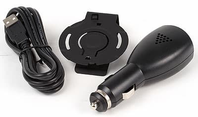 Кроме самого устройства в него входят еще четыре предмета. Во-первых, толстая, подробная и весьма грамотная инструкция на девяти языках, включая и русский. Во-вторых, стандартный USB-кабель для зарядки. Использовать его можно не только с компьютером, но и в автомобиле, благодаря третьему компоненту комплекта — адаптеру для гнезда прикуривателя. Последний снабжен обычной USB-розеткой A-типа, да и параметры выдаваемого тока стандартны для USB — 500 мА, 5 В, т. е. его можно применять не только для зарядки miniUFO, но и для зарядки/питания любого устройства, способного запитываться от шины USB (причем даже если оно снабжено нестандартным разъемом — только кабель с собой захватить фирменный и все). А еще две вещи предназначены для инсталляции комплекта. Устройство можно вместе со специальной подставкой прилепить на двухсторонний скотч где-нибудь на «торпеде» автомобиля. Впрочем, способ этот хорош, только если вы планируете использовать miniUFO только в автомобиле и только в одном. Да и если он у вас на ночь остается во дворе есть некоторые опасения, что такая штучка может легко привлечь внимание криминальных элементов — сама гарнитура недорога, но вот менять потом боковое стекло то еще удовольствие. Поэтому лично мне больше понравился другой способ инсталляции — при помощи входящей в комплект скобы на противосолнечный козырек. В данном случае устройство менее бросается в глаза и может быть легко «демонтировано» во избежании либо для использования в другой машине или просто на столе рядом с рабочим или домашним компьютером.