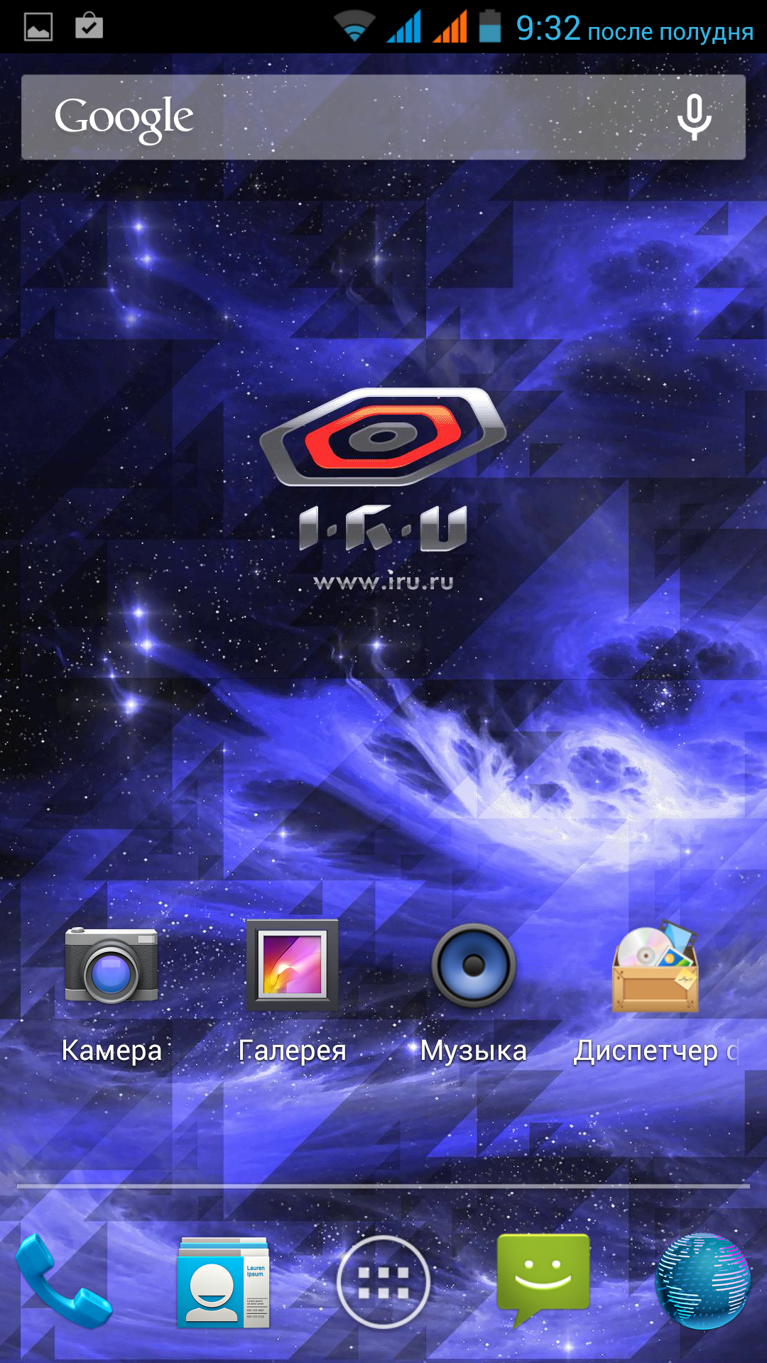 Как и в случае iRu M5306 Gzhel, внешний вид ОС в герое обзора не претерпел изменений. Какие-либо оболочки или надстройки над Android отсутствуют, разработчики смартфона ограничились добавлением стороннего программного обеспечения в прошивку. Список дополнительных приложений практически такой же, как у iRu M5306 Gzhel: Adobe Reader, Cool Reader, Documents-to-go, Flashlight, MoboPlayer и полдюжины приложений Яндекса. Отличия — отсутствие мобильного браузера Opera и наличие виджета-прогноза погоды Go Weather.