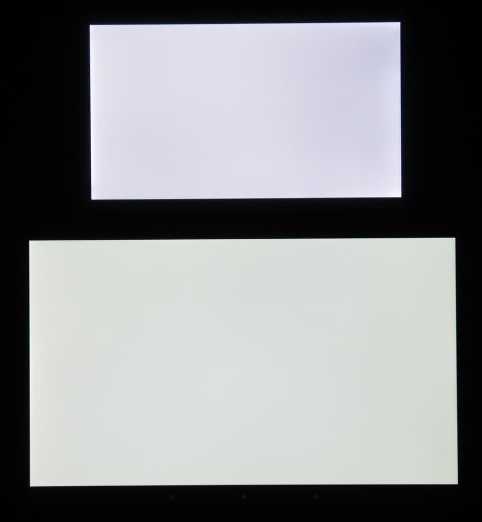 Видно, что цвета не сильно изменились у обоих экранов, и контраст под углом сохранился. И белое поле: