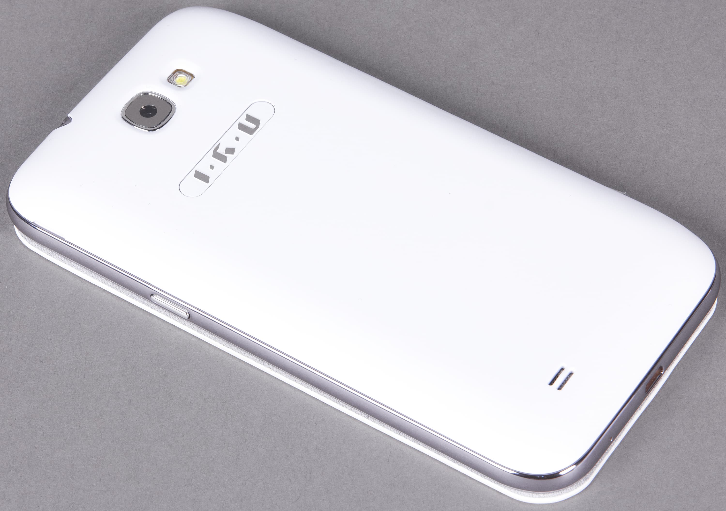 Изготовлен смартфон IRU из прочного пластика двух видов: белого для лицевой и задней панелей, серебристого для ребра жесткости по периметру корпуса и клавиш управления. Собран герой обзора неплохо, скрипы и скрежет при работе со смартфоном отсутствуют, нет и заметных неровных зазоров между деталями. Единственная проблема, к которой можно придраться — минимальный люфт крышки аккумулятороного отсека в пазах, из-за чего она двигается на десятые доли миллиметра.