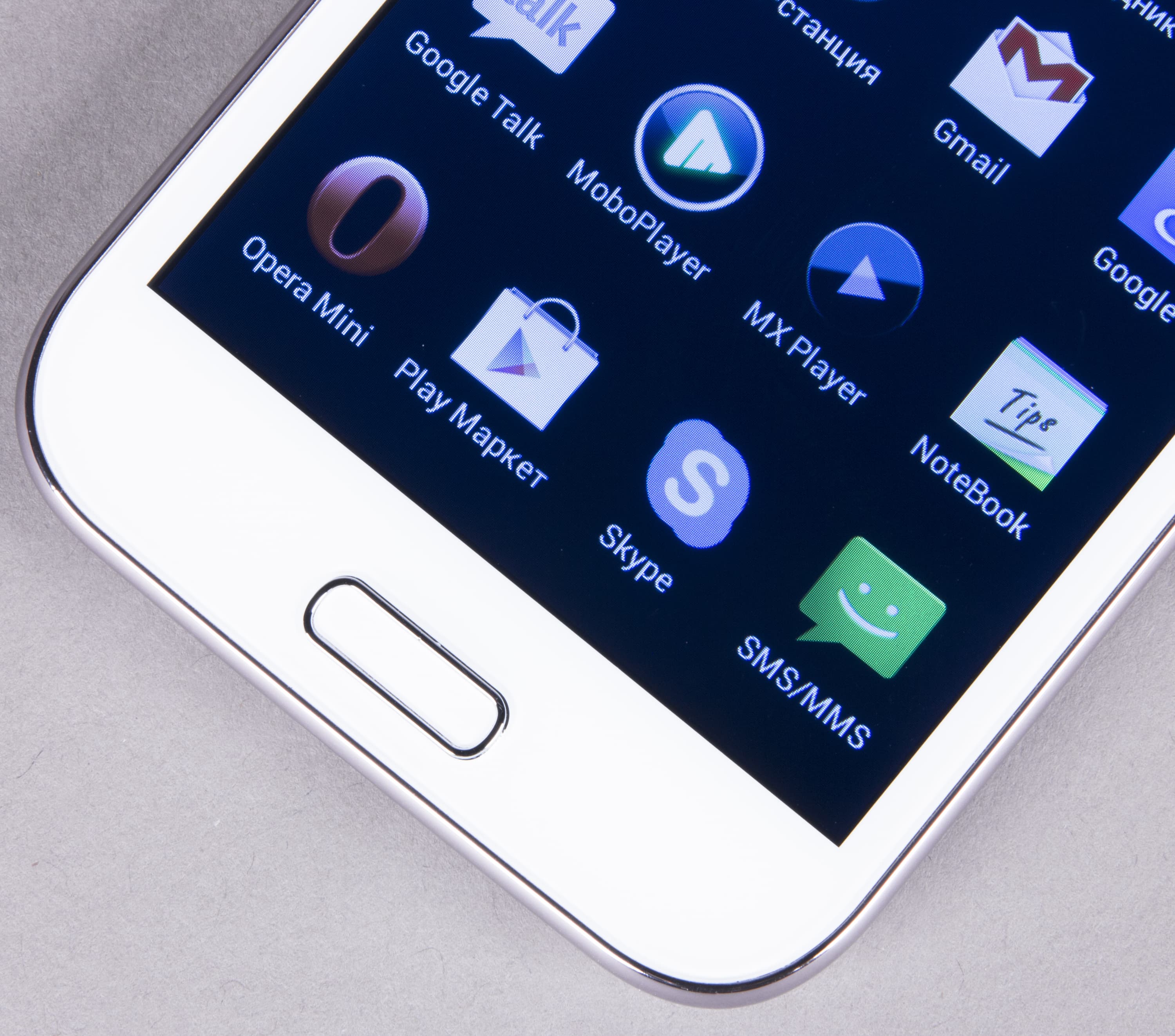 Центральная клавиша IRU M5302 Gzhel выполняет ровно те же функции, что у смартфонов Samsung — включение смартфона из режима сна и возврат к главному экрану системы. Подсветки у кнопки нет, нет и сканера отпечатков пальцев. Размеры, форма и ход клавиши очень комфортны. По обе стороны от нее расположены две сенсорные кнопки. Они оснащены подсветкой — достаточно яркой, чтобы просвечивать также пластик лицевой панели вокруг клавиш и раздражать в темное время суток. Одно хорошо — отключается подсветка кнопок достаточно быстро.