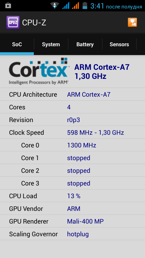 | SoC | MediaTek MT6582 (4 ядра ARM Cortex-A7) @1,3 ГГц | MediaTek MT6589 (4 ядра ARM Cortex-A7) @1,2 ГГц | MediaTek MT6589 (4 ядра ARM Cortex-A7) @1,2 ГГц | MediaTek MT6589 (4 ядра ARM Cortex-A7) @1,2 ГГц | MediaTek MT6589T (4 ядра ARM Cortex-A7) @1,5 ГГц | Qualcomm Snapdragon S4 @1,2 ГГц (2 ядра, ARMv7 Krait) |