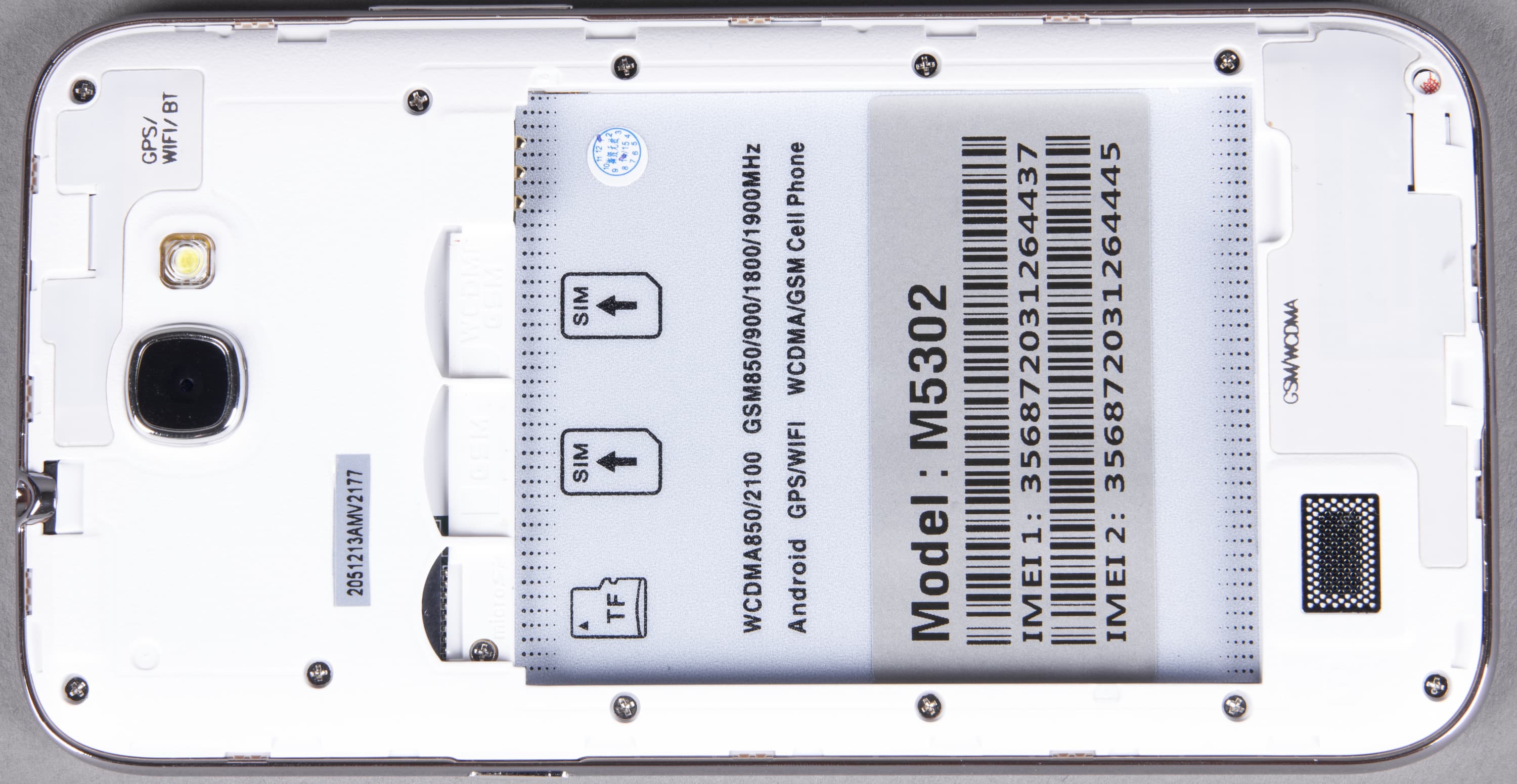 Штатная батарея (точнее, две батареи) смартфона IRU М5302 Gzhel имеет внушительные размеры, ее емкость — 3000 мА·ч. Посмотрим, насколько владельцу героя обзора действительно необходимо иметь второй аккумулятор про запас.
