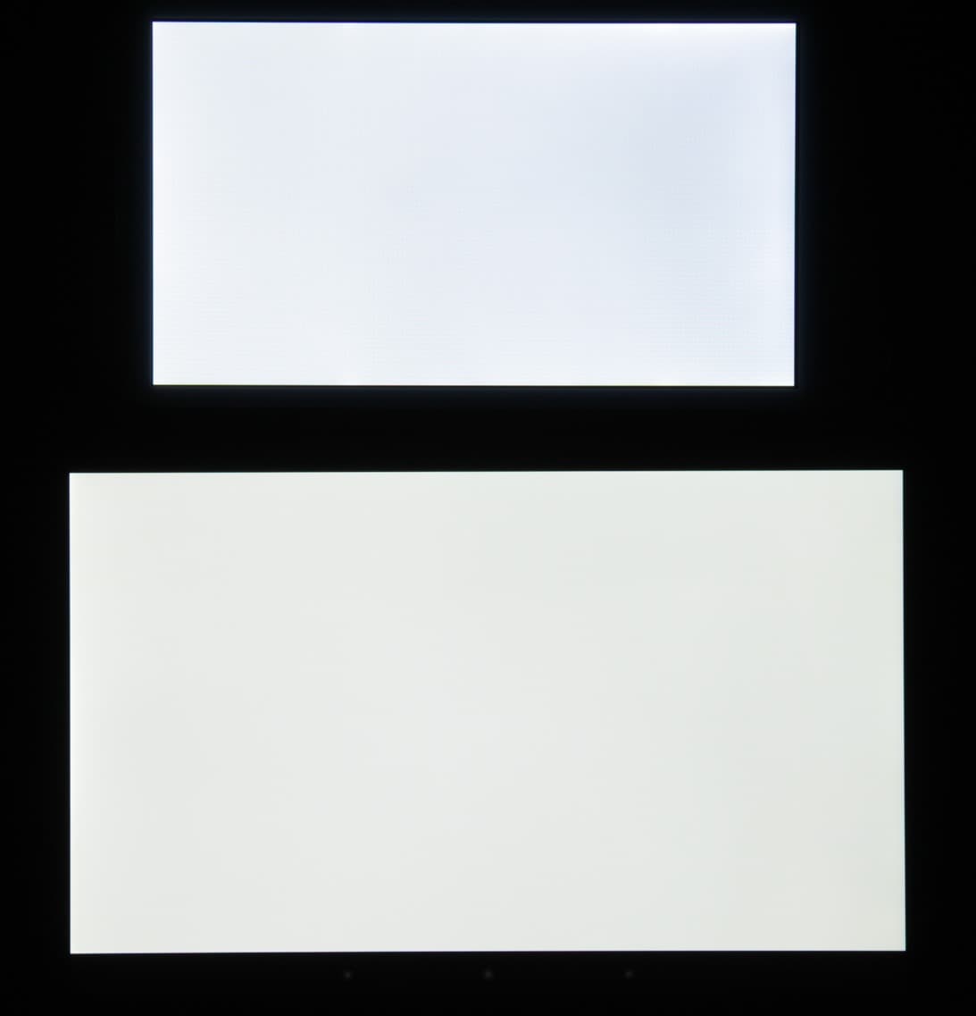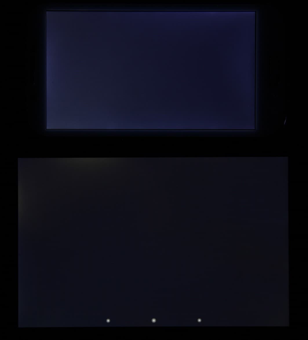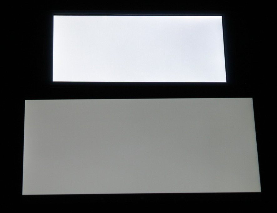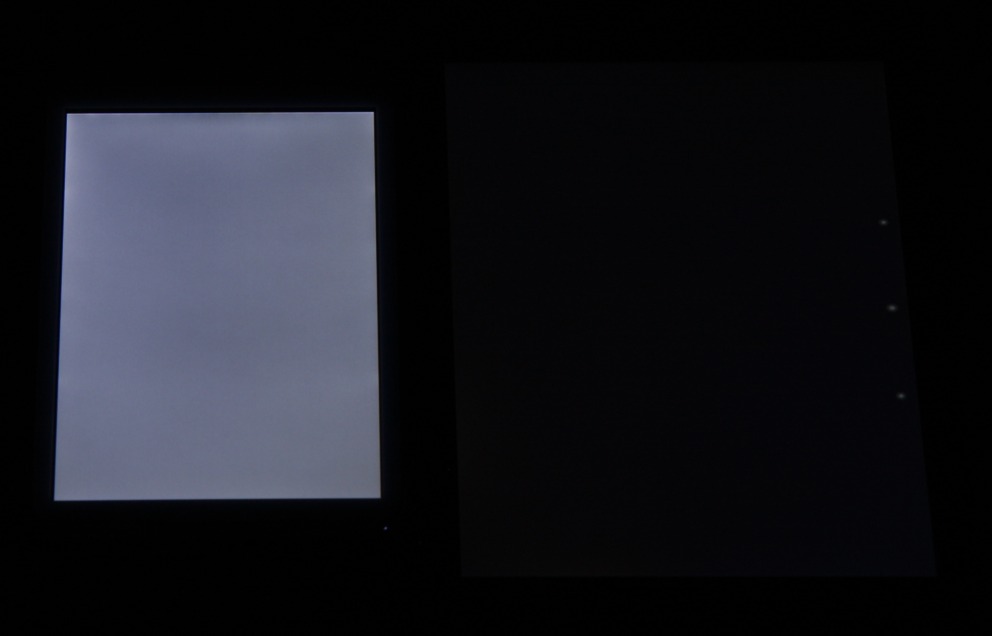 Да, на экран IRU M5302 выведено черное поле. При перпендикулярном взгляде равномерность черного поля далеко не идеальная: