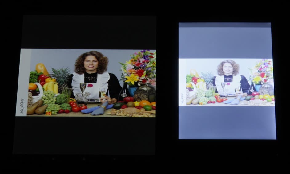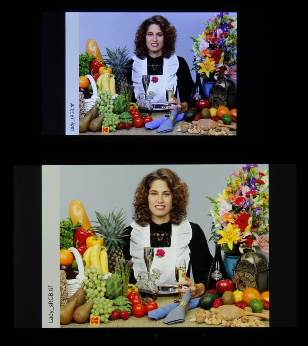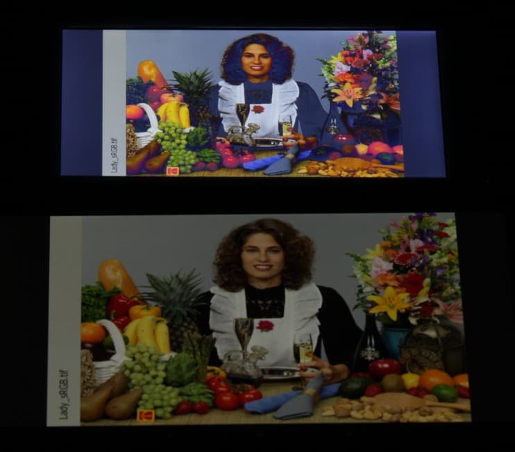 Данный прием позволяет увеличить яркость экрана при тех же затратах энергии на подсветку, но цвета теряют в насыщенности (в данном случае незначительно). Баланса оттенков на шкале серого как такового нет вообще — цветовая температура выше стандартных 6500 К и сильно меняется от оттенка к оттенку: